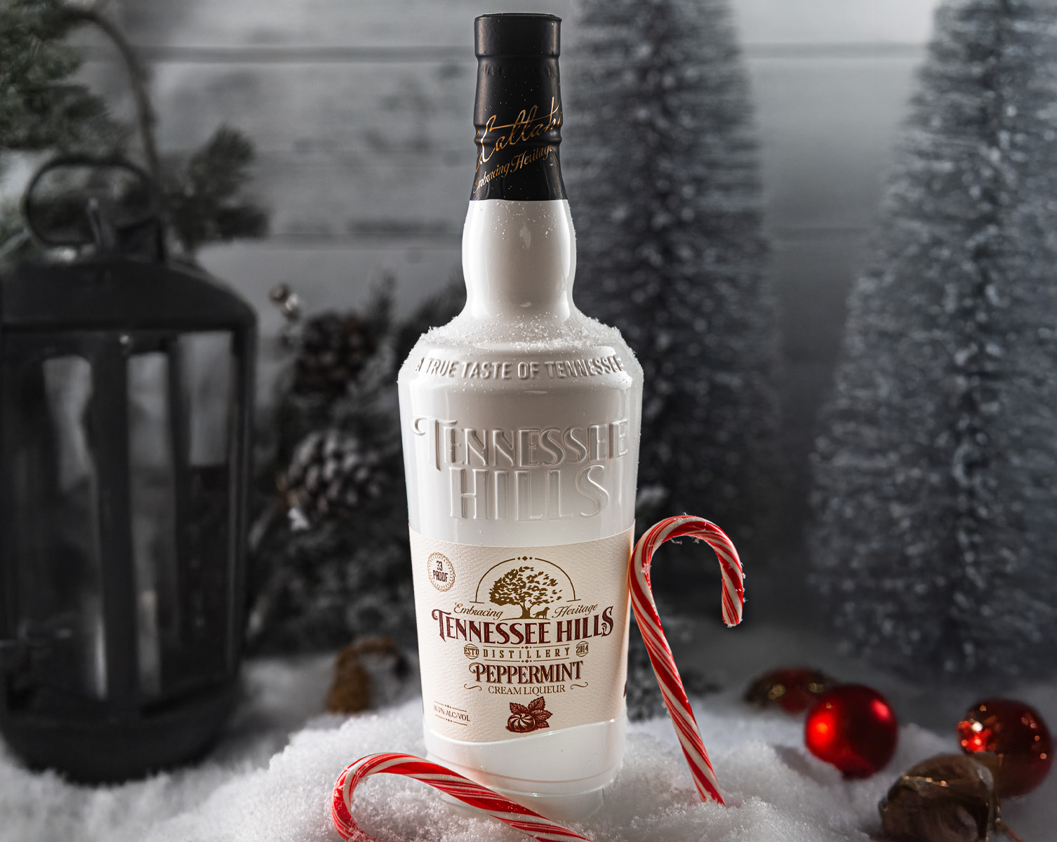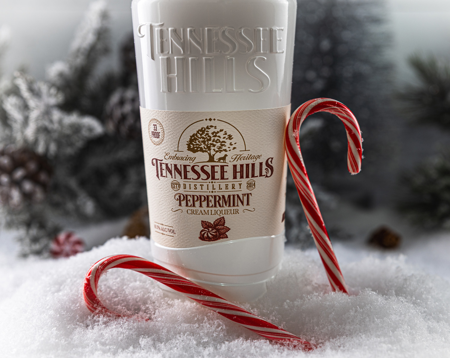 The opaque white glass, paired with vibrant label colors and illustrations, helps the cream liqueurs stand out within the Tennessee Hills lineup while still fitting seamlessly into the overall branded house architecture.